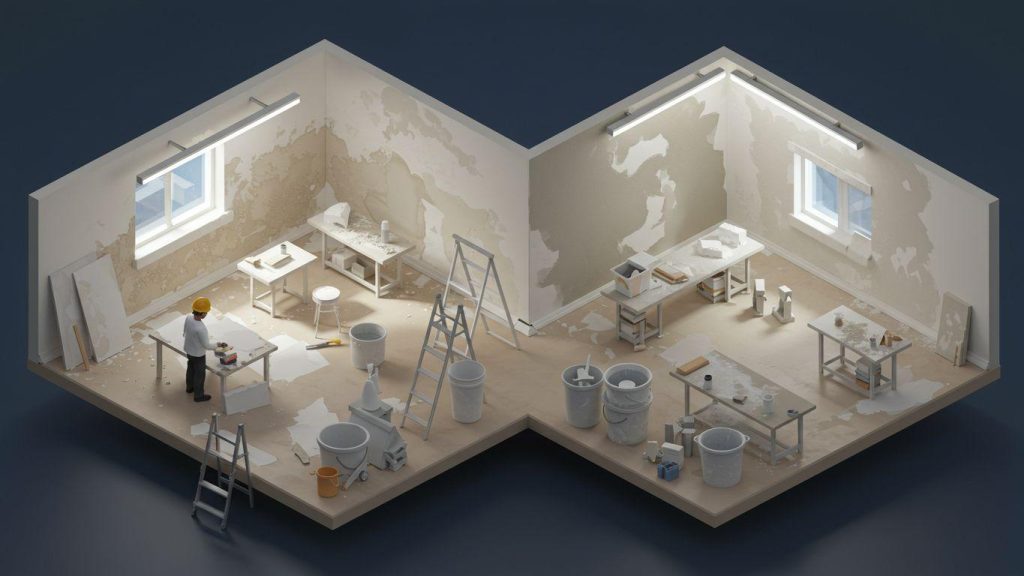 Перед началом отделочных работ важна тщательная подготовка рабочих поверхностей. Недостаточное внимание к подготовке – одна из основных причин некачественного результата. Подготовительный этап включает очистку, выравнивание, обработку и защиту поверхностей.
