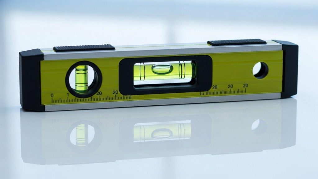 - Регулировка поверхности. Если пузырьок смещён в сторону, отрегулируйте положение объекта до тех пор, пока пузырёк не встанет посередине.